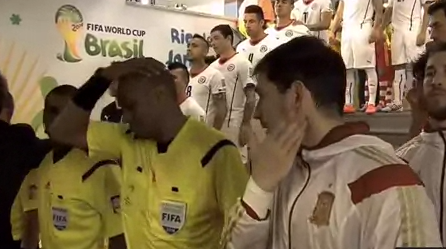 Before Spain was knocked out of the World Cup by Chile on Wednesday afternoon, an assistant referee got completely snubbed by a handshake from...