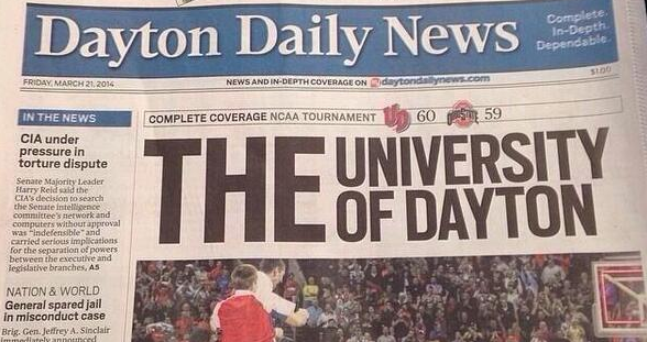 Dayton beat up in-state Ohio State in the 11-6 NCAA Tournament matchup. The Dayton Daily News wanted to rub the victory in, so for...