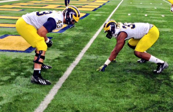 Some photos from Gwendolyn Bush from Michigan’s third spring practice on Friday. https://twitter.com/UMICH_Mama_G/status/571468053894041600/ https://twitter.com/UMICH_Mama_G/status/571433971436933120/ https://twitter.com/UMICH_Mama_G/status/571428125638299648/ https://twitter.com/UMICH_Mama_G/status/571418904821702658/ Coach Greg Mattison coaching up the DLinemen. #GrindingInTheGlick...