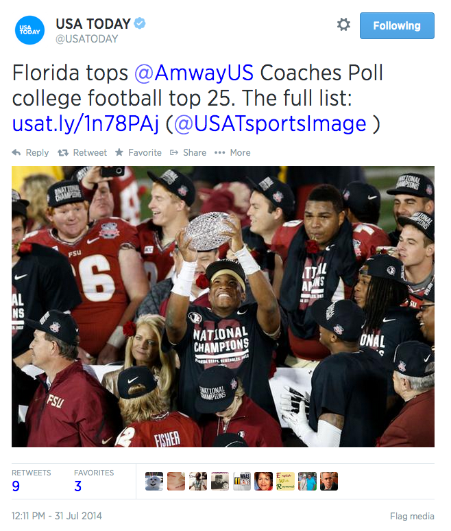Florida State is the preseason No. 1 team in the country according to the Amway Coaches Poll. However, a blunder by the USA Today Twitter...