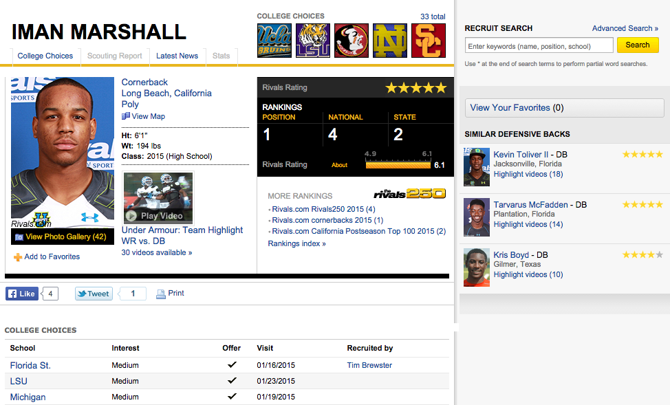 Five-Star CB and #4 overall player in the country, according to Rivals, Iman Marshall, is set to visit Michigan on Monday. It’s thought that...