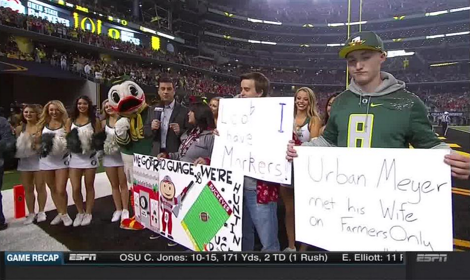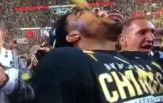 Tyvis Powell videobombed Cardale Jones’ interview with a kiss following OSU National Championship win over Oregon. [Fansided GIF]
