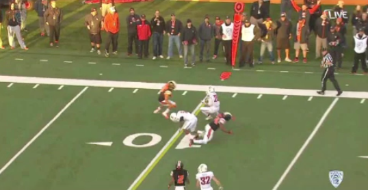 The Pac-12 refs that were calling the Oregon State-Washington State game had a total brain fart after this massive collision. They blew the play...