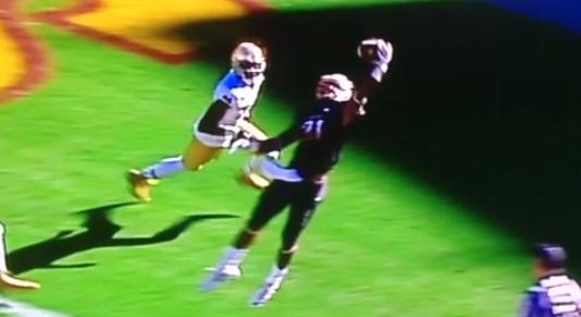 Oklahoma QB Trevor Knight did not have a good day on Saturday and this throw pretty much summarizes the day. Miss a wide receiver...