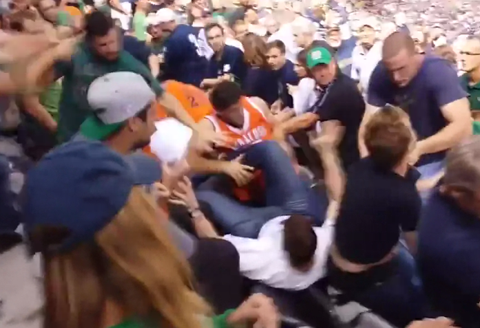 https://www.youtube.com/watch?v=tvlnXdNtIgo Notre Dame kept their undefeated season intact after Saturday’s 31-15 win over Syracuse in New York. During the game, several Irish and Orangemen...