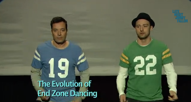 On Late Night with Jimmy Fallon, Jimmy Fallon and Justin Timberlake showed the evolution of the end zone dance in a hilarious new video....