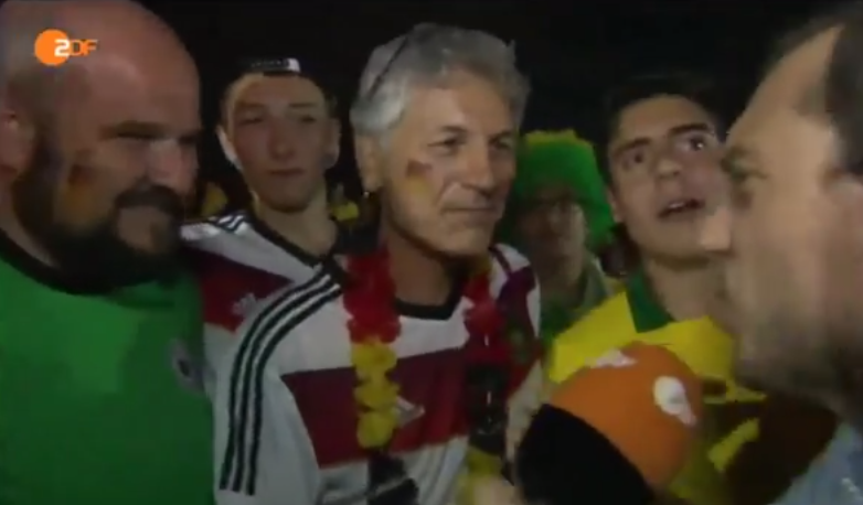 Looks like we have a new trend for post-match interviews. German TV was interviewing Germany fans after their throttling of Brazil when a man...