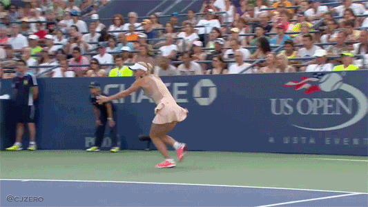 Eugenie Bouchard celebrated her 2nd round victory in the US Open over Cirstea as only Eugenie Bouchard can do. [@myregularface]