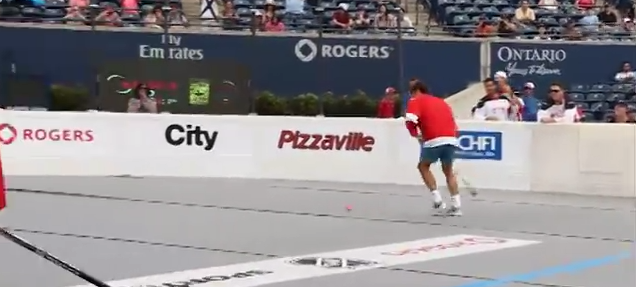 This is one tough kid. He took this 121 mph serve straight to the nuts, barely keeled over and still retrieved the ball immediately....