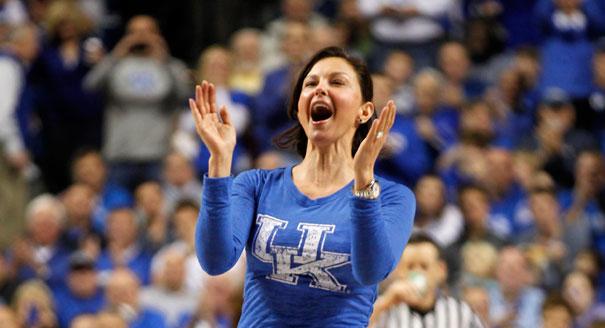 Kentucky and Notre Dame are set to tip-off for a spot in the Final Four later this evening. Seems like the game cannot come soon enough for super-Kentucky fan Ashley Judd, who was doing some yoga with her instructor and one of the team’s walk-ons.