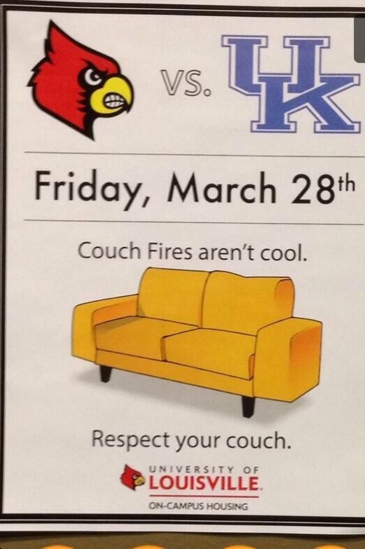Pretty subtle message coming from the Louisville Campus Housing in regards to the Cardinals game this Friday against their rival. It will be interesting to see if students fire up some couches after the game anyways; my guess would be yes.