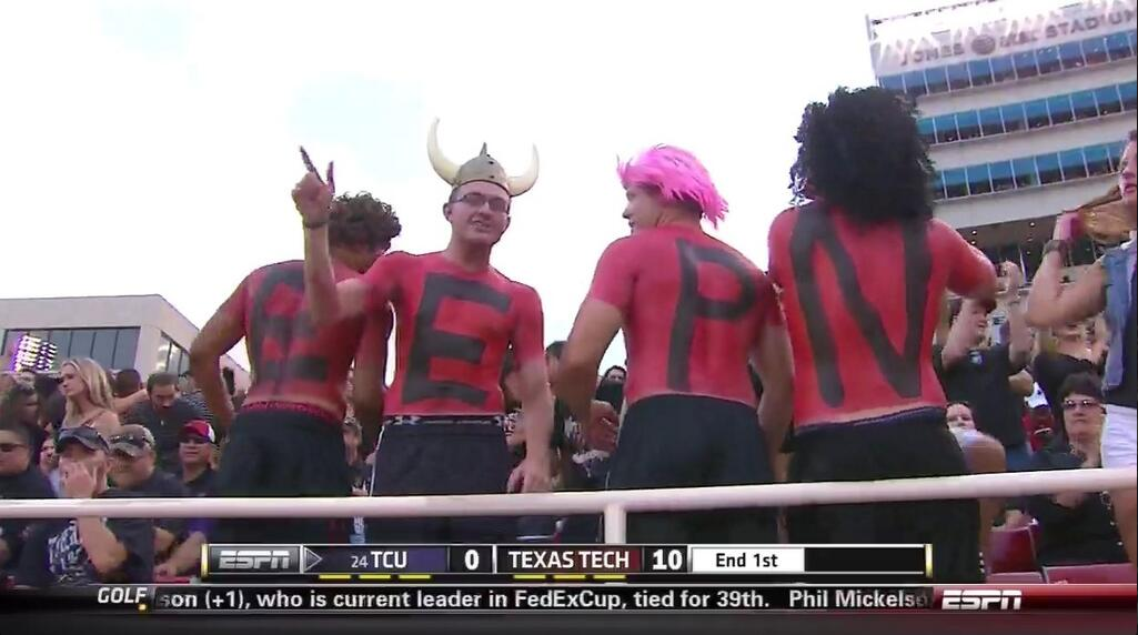 Fans paint “EEPN” on their bodies for Texas Tech-TCU game