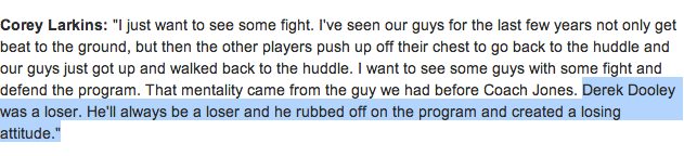 I think it’s safe to say that former Tennessee Volunteer Corey Larkins isn’t a fan of Derek Dooley. The player responses are actually pretty interesting regarding their time at Tennessee.
