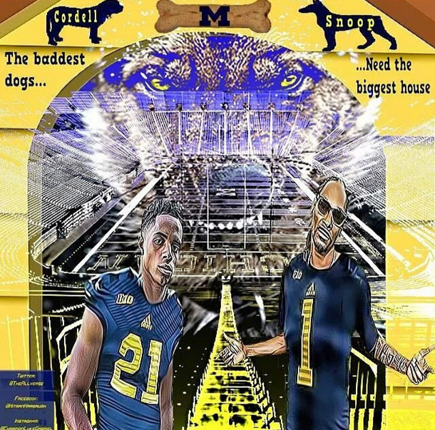 Snoop Dogg posted the above picture of himself and his son, Cordell Broadus, to his Instagram. Here’s what the rapper included with the picture of the two wearing Michigan gear:
