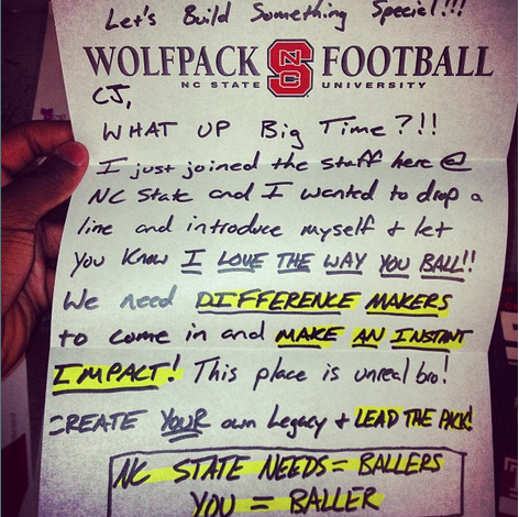 NC State sends out interesting letter to recruits