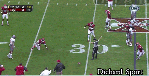 When you’re standing on the sidelines you have to pay extra attention to the play on the field. Oklahoma Sooners head coach Bob Stoops was absolutely leveled by one of his own players during the Sooners game against the Texas Tech Red Raiders.