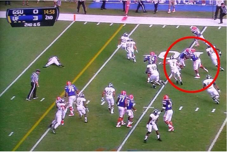 A photo of two Florida Gators players blocking each other during their loss to Georgia Southern went viral on the Internet over the weekend, and now a GIF has finally emerged. Definitely tough to watch if you’re a Gators fan.