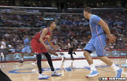 BG is definitely ecstatic that his parter-in-crime, Chris Paul, is back and is now at the very least a top 10 player in the NBA. Griffin had 26 points, 11 boards, and 6 assists through three quarters in the game, and this was after returning from a shin contusion early on in the first quarter.