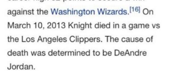 If you were wondering if Brandon Knight was still alive following Sunday’s dunk of the year from DeAndre Jordan on him, it appears that he still is. From Knight’s wiki page: