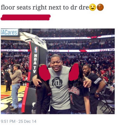A couple Chicago Bulls fans had a bit of a mix up while attending last night’s Bulls’-Pelicans game. Spotted by a user on Reddit, it turns out these ladies were actually snapping a photo with Derrick Rose’s brother Reggie, not Dr. Dre.