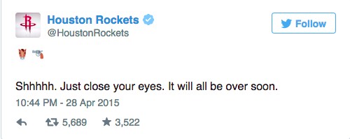 The Houston Rockets may be looking for a new social media manager following the team’s series clinching win over the Dallas Mavericks on Tuesday night. Take a look at the tweet, which has been deleted, that featured a gun and a horse emoji.