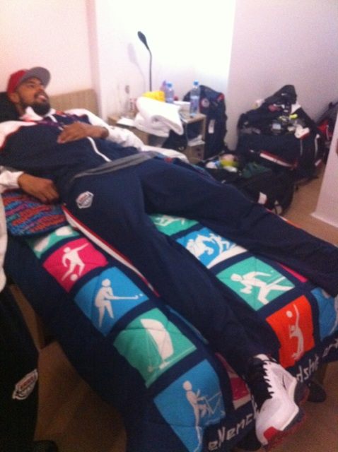 Olympic hurdler, Lolo Jones, tweeted out some photos to her 178,000 followers of her, and some members of Team USA Basketball. Check out Jones’ biceps as she takes a photo with Chris Paul, LeBron James and Kevin Durant. I wonder who would win in an arm wrestling match between her and Durant?