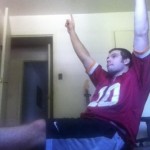 ‘Griffining,’ as seen above, is Griffin raising both index fingers while seated after he connected for a 88-yards with Pierre Garcon.