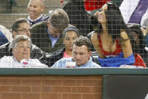 It wasn’t just Johnny Manziel who was drawing all the eye balls during Tuesday night’s Mariners-Rangers game. The soon-to-be NFLer attended the game at Globe Life Park with a quite attractive brunette, who Busted Coverage identified as 24-year-old model Kyndal Kyaire.