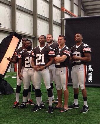 Johnny Manziel and the rest of the Cleveland Browns’ rookies took a photo during OTAs this week. While almost all of his other teammates decided to keep their cleats on,  Manziel wanted to be comfortable and put on a pair of flip-flops for the photo. Hey, at least he wasn’t wearing socks and sandals.