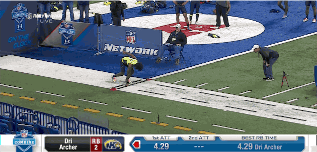 Kent State’s Dri Archer was just a hair off from breaking Chris Johnson’s All-Time NFL Combine record in the 40-yard-dash. The running-back posted a official time of 4.26, just 0.2 seconds off Johnson’s time of 4.24 at the 2008 Combine. Some NFL team is going to be very happy to have this type of speed on their team.