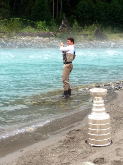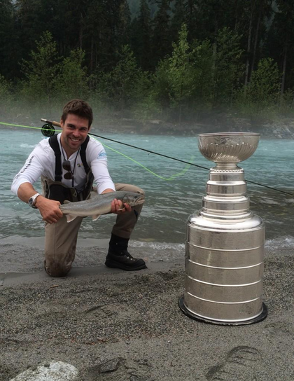 Los Angeles Kings defenseman Willie Mitchell wanted to enjoy the great outdoors with his friends and the Stanley Cup. He took Lord Stanley fly fishing and rafting in British Columbia. Quite a relaxing day to celebrate winning the best trophy in sports.