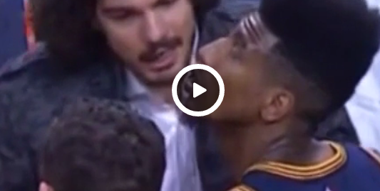 Iman Shumpert and Anderson Verajau shared a moment during a timeout in the the Cavs’ Game 3 win over the Celtics. [Michael Shamburger/The Big Lead]