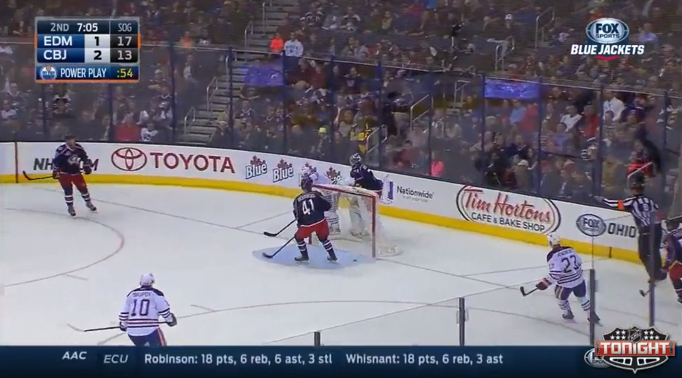 [AdSense-A] Hockey pucks have a funny way of taking strange bounces off the boards and this time Blue Jackets goalie was victimized by a...