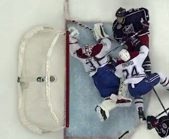 Columbus Blue Jackets forward Corey Tropp got extremely creative on this one. After being stopped initially, the puck landed on top of the net...