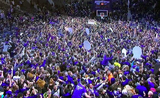 A wild scene unfolded following Kansas State’s upset win over rival Kansas on Monday. One court-storming fan was spotted body-checking Jamari Traylor in the...