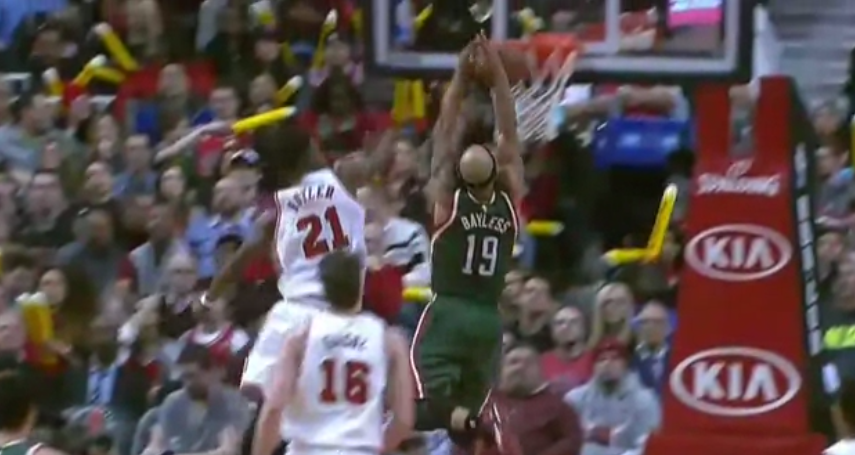 Jimmy Butler was not only swatting Milwaukee Bucks player’s shots, the All Star guard was also throwing down nasty putback slams. [Gustavo Vega]