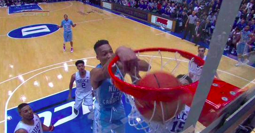 https://vine.co/v/OxjPY5n1bZt J.P. Tokoto finishes an eventful first-half of Wednesday’s UNC-Duke game with a thunderous put-back dunk. [AdSense-A] Tokoto had another highlight-reel slam later in...