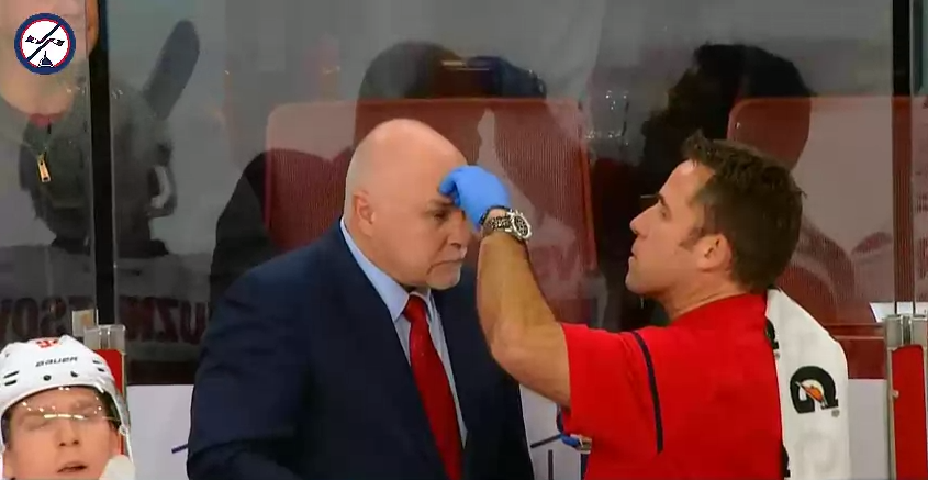 Washington Capitals forward Marcus Johansson got checked near his bench and as he was almost falling over the boards, he whacked his coach Barry...