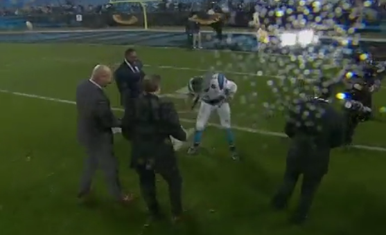 Everything is always better after a win, isn’t it? Cam Newton was certainly enjoying himself. [@corkgaines]