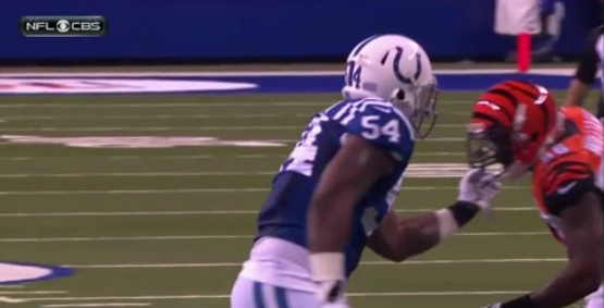 Indianapolis Colts’ Andrew Jackson gave Cincinnati Bengals’ Shawn Williams’ facemask a slight little tug and Williams did a hilarious job selling the penalty. He instantly...