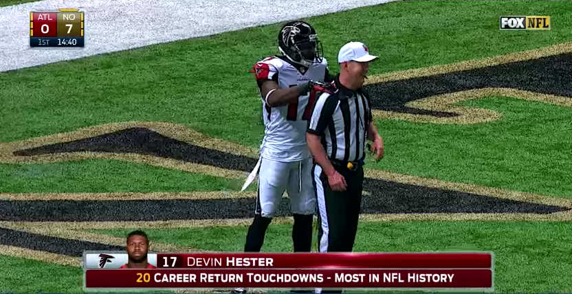 Looks like Devin Hester was trying to relax the ref and maybe earn the Falcons a few calls with this massage. [Reddit]