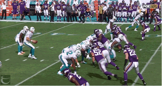 It looks like the Miami Dolphins offensive line completely forgot what play they were supposed to run here, everyone except for the center that...