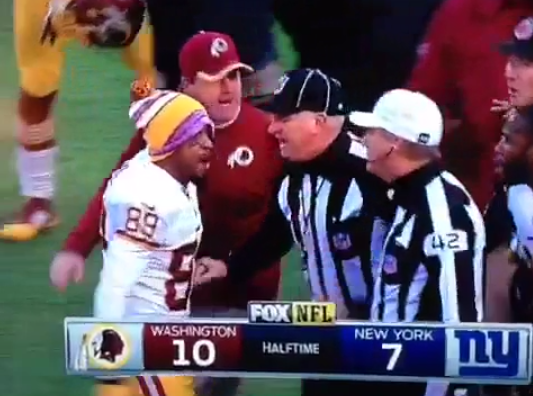 The Washington Redskins did not like RG3’s touchdown getting called back and let referee Jeff Triplette know about it. Santana Moss was flagged on...