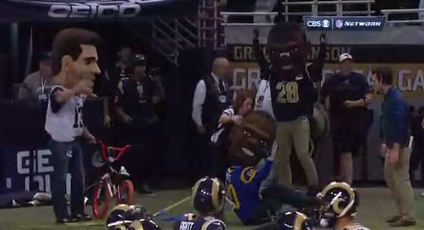 This mascot race between Kurt Warner, Isaac Bruce and Marshall Faulk went exactly as everyone hoped it would. Not only was the crash awesome,...