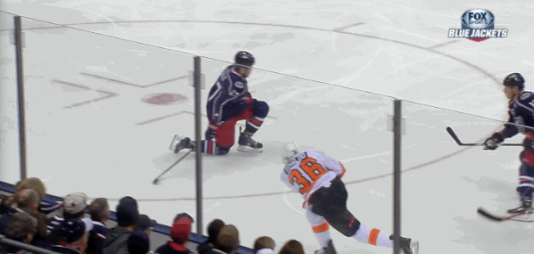 This is painful to watch, so it’s no surprise that Blue Jackets’ Dalton Prout had to get some assistance from one of the referees...
