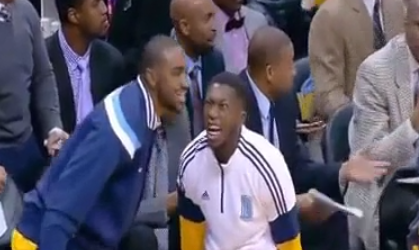 Kenneth Faried had a massive dunk during Tuesday’s game against the Bulls causing Nate Robinson to get wild on the bench. [@gifdsports]