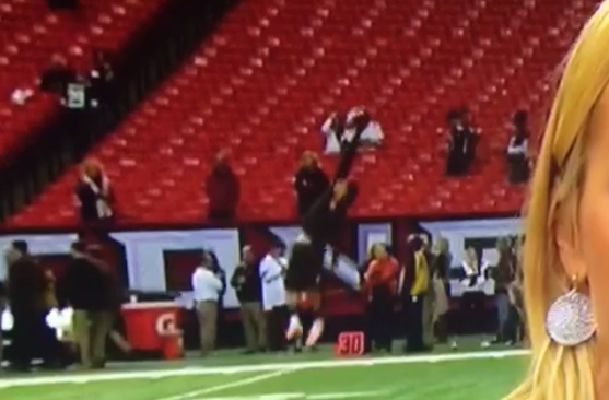 ESPN’s Lindsay Czarniak was reporting on the Browns-Falcons game when it turned out she was in the perfect spot. Cameras picked up this absolutely...