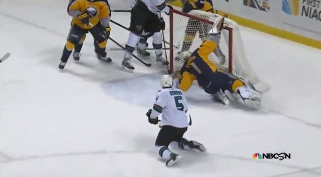 Buffalo Sabres goalie Jhonas Enroth was down and out when he did the only thing he could think of to make a save and...
