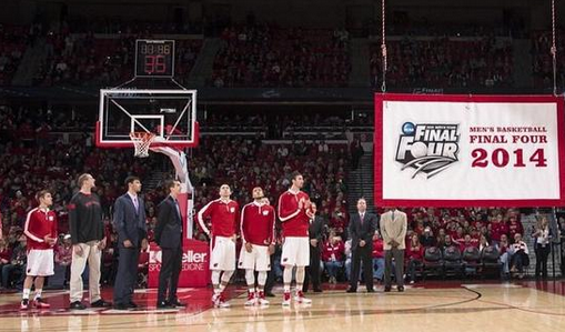 Wisconsin beat Northern Kentucky 62-31 in their first action of the 2014-15 college basketball season. Before the game, watch as Wisconsin hung the banner...