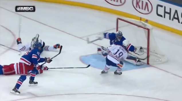 This is why Henrik Lundqvist is one of the best goalies in the world. This save on Oilers defenseman Justin Schultz was absolutely incredible....